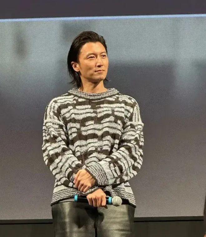 他以一身黑灰条纹毛衣亮相,帅气不减当年。
