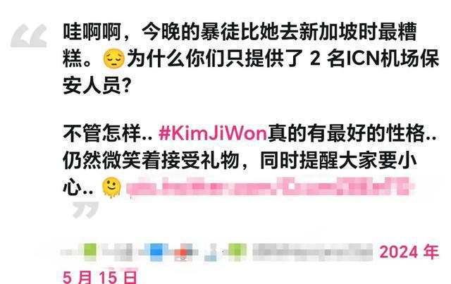 同时,也有网友对金智媛的安保人员的行为提出了质疑,认为他们应该更加温和地处理现场情况。