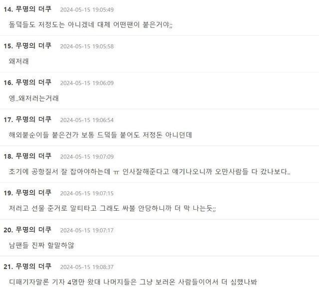 此后,这场混乱已成为韩国各个社区网站上的热门话题。在 TheQoo 上也成为了热帖,网友们表达了对金智媛的震惊和担忧,同时指出她在混乱中继续对粉丝友善的态度一定是多么好。