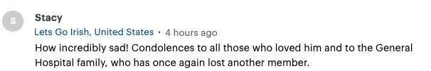 真的令人悲伤!向所有爱他的人和《综合医院》大家庭致以哀悼,这个剧组再次失去了一名成员。