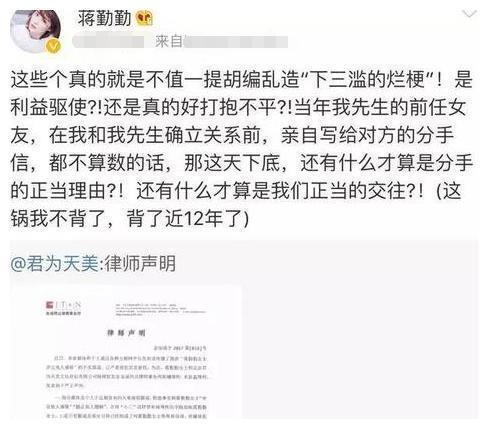 而最后这件事以蒋勤勤发布了一条微博和一张律师函结束。蒋勤勤当时这样回应道: