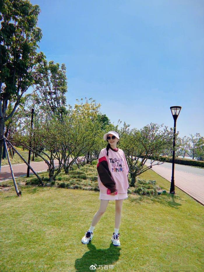 江疏影这种穿衣方式也非常值得学习借鉴,如果大家感觉宽松肥大的长袖上衣,不适合当下温度,直接换成男友风T恤也是ok的。喜欢短裤的姐妹儿,可以用男友风T恤搭配短裤,完全隐藏短裤的穿衣方式,非常符合今年夏天的穿衣氛围。