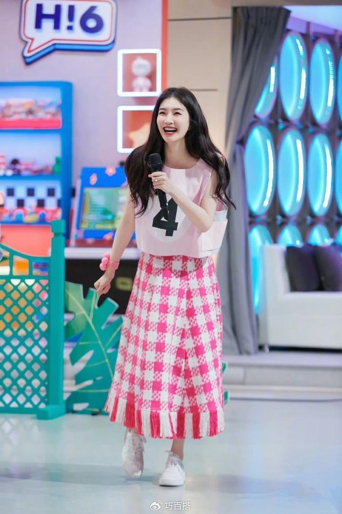 身穿粉白相间格纹裙的江疏影,既有少女的清纯又有成熟女性的风情,两者结合,让她不费力就俘获了男女老少们的芳心,表现力简直不要太强!