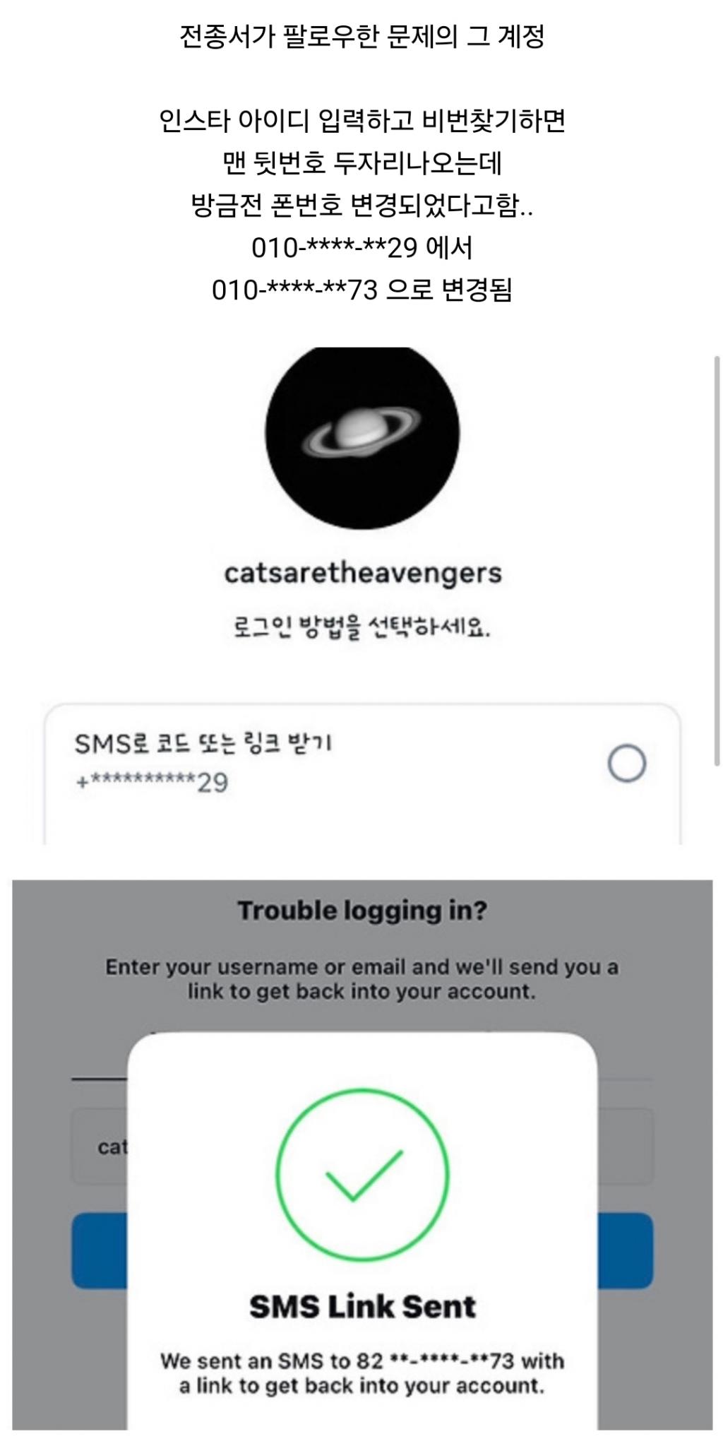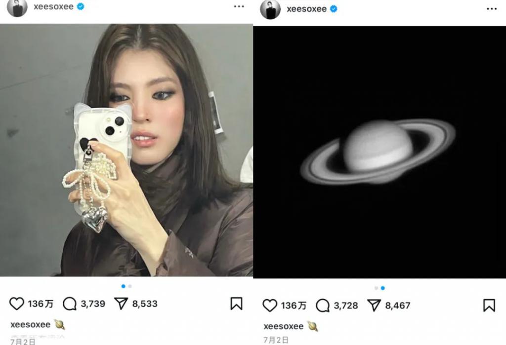 另外,该可疑账号的头像与今年 7 月韩素希在自己的个人 ins 内上传过的星球图片相同,而随着星球图片一同上传的还有一张她使用小猫图案手机壳的自拍,因此许多人推测看似昵称与小猫有关的账号 "cataretheavengers" 实际是由韩素希本人创建。