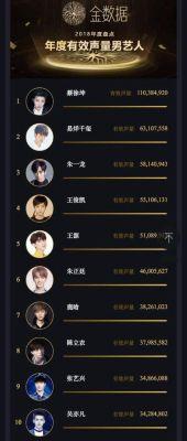 蔡徐坤跌出流量明星排行榜20名,易烊千玺排名第五,榜首实至名归