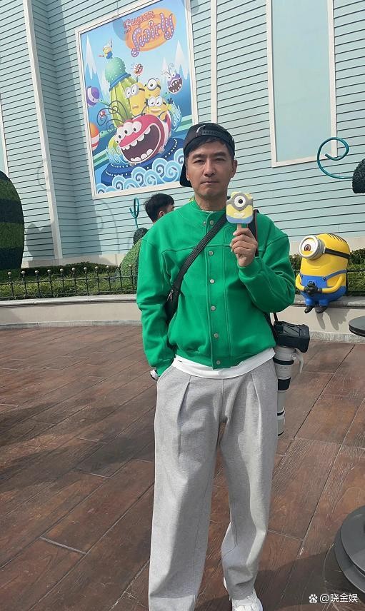 郭晓冬:一家三口同游环球城,才47岁就已经是“两鬓斑白”的模样