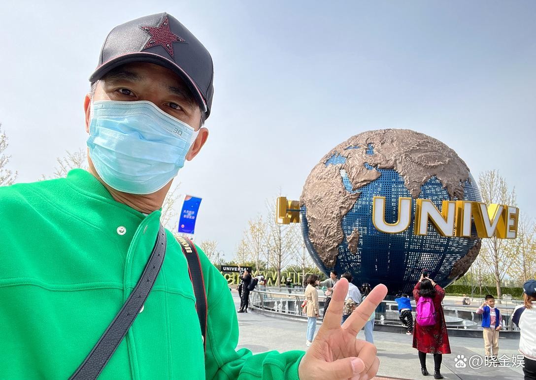郭晓冬一家三口到北京环球度假区游玩——才47岁就两鬓斑白了