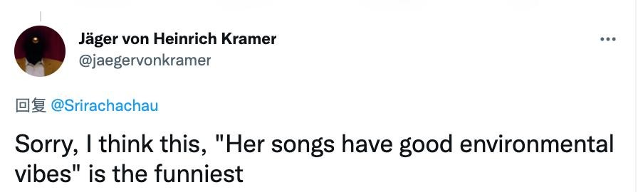 对不起,我觉得 " 她的歌有很好的环境氛围 " 是最好笑的。