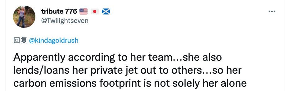 显然,按照她团队的说法,她还把私人飞机借给过别人 ...... 所以她的碳排放不仅仅是她一个人的。