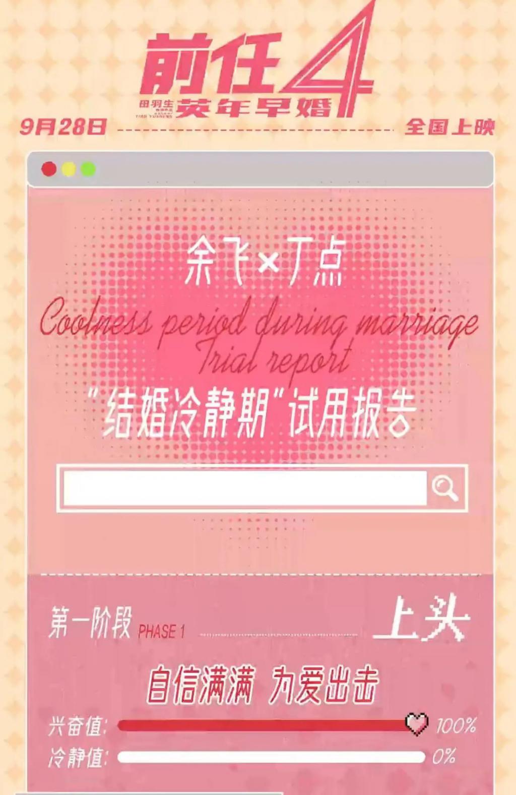 与之相对的,成年爱情的现实性,更贴合观众生活。虽然 " 前任 " 系列有意剥离了物质层面,只纯粹的谈论感情本身,但 " 前任 " 系列始终与现实保持一定相关性,比如,《前任 4》对 " 结婚冷静期 " 进行不少笔墨描摹,前期相互客气,中期相互摆烂,后期矛盾发生,有层次讲述情侣生活细节。