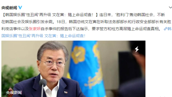 媒体也是顺藤摸瓜,就胜利这件事情查出了越来越多的事情,没有一件事情被曝光的时候,都让全世界的粉丝们都是为之震惊。而胜利事件竟然还和10年前的张紫妍事件也是有着很深的关系,所以这一次韩国民众们也是异常气愤,截止到目前已经有了57万人加入到了请愿的队伍中。如今终于有好消息传来,57万人请愿成功,张紫妍案延长2个月,韩政府:赌上命运彻查真相。张紫妍案确认延长2个月调查时间,而且韩国警方将彻查李胜利、郑俊英等明星,而张紫妍事件更是重新审理,就连韩国总统文在寅18日下达指示:要求警方和检方高层,赌上命运彻查真相。