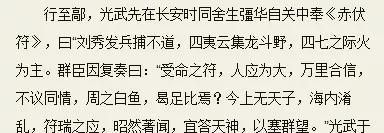 “赤伏符”中记载说“刘秀上应天命,当继汉统为帝”。也就有了刘秀当为天子的预言出现,只不过这条预言出现时真正的东汉光武帝刘秀还在南阳乡下种地,所以肯定不会是这个刘秀所为的。