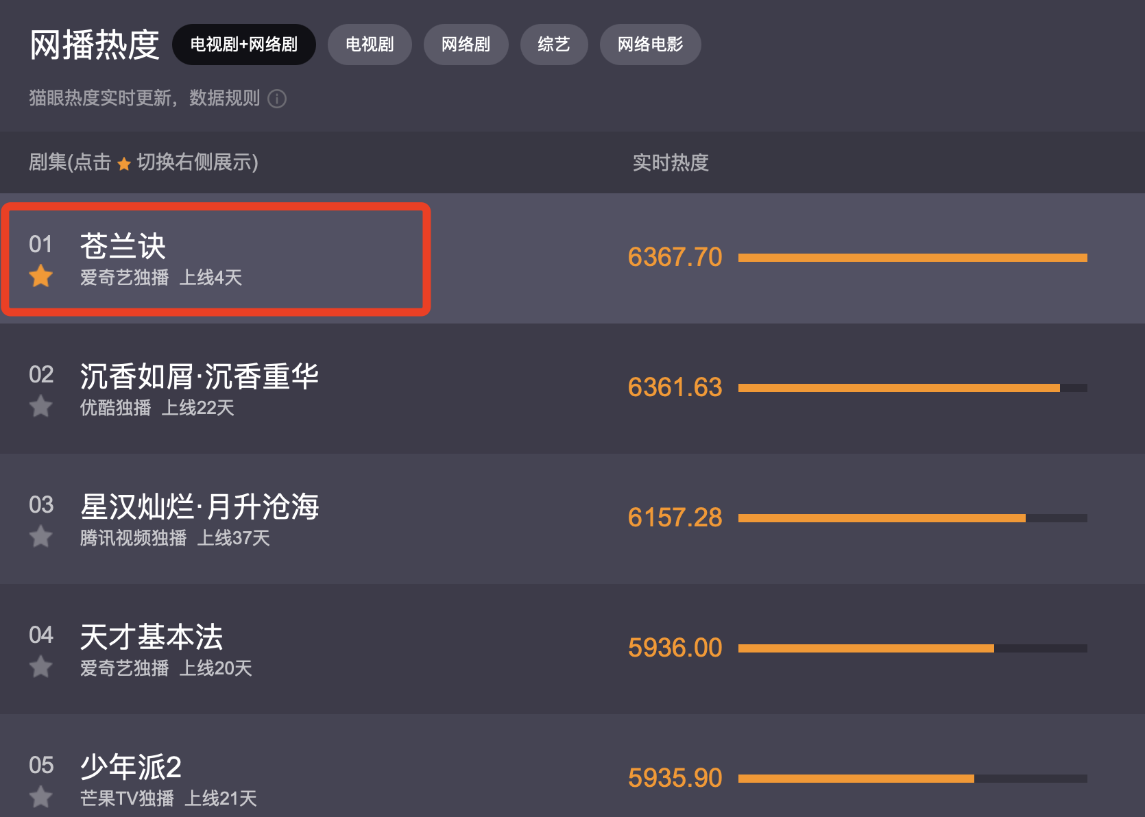 两人主演的古偶剧《苍兰诀》上线4天,拿下播放量冠军,直接把杨紫、成毅主演的《沉香如屑》挤到第二名,2部剧都是古偶爱情剧,内容相似都是大佬爱上我的剧情。