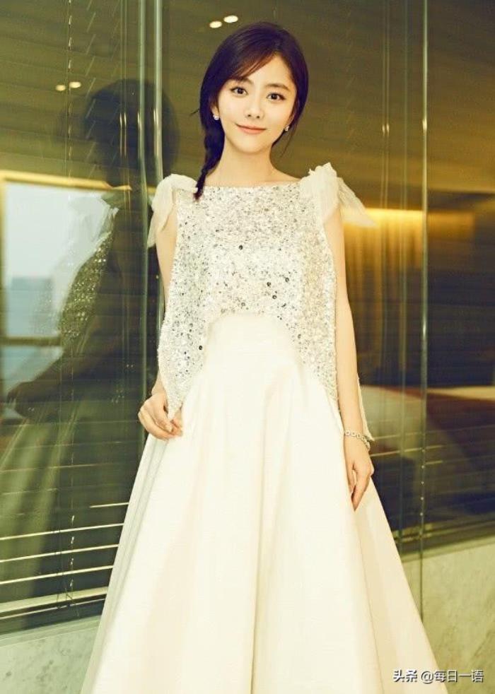 谭松韵黑色长发辫成辫子,立体的五官搭配精致的妆容,面带甜美笑容,上身穿白色砍袖,彰显精致的细节美,简洁小圆领设计,下身搭配高腰长裙,还有种高级感的大方时尚feel,整个仙气十足,展现高贵的名媛气质,特别适合约会的婉约look!
