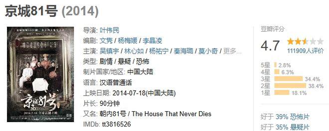 因为没人能想到,一部豆瓣 4.7 的烂片,竟然统领内地恐怖片票房 TOP1 长达十年。