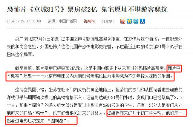 除此之外,电影宣传还抓住了「改编自民间传说的四大凶宅之首朝内 81 号的诡异故事」这个营销点。