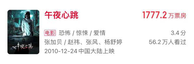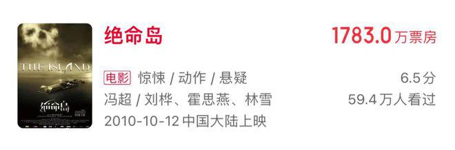 同年,《宫》爆红的杨幂与陈小春出演了一部名为《孤岛惊魂》的小成本恐怖片,更是以近9000 万的票房创下了国产恐怖片以小搏大的纪录。