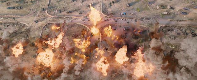 特效和镜头都打磨得很认真,而且就像导演陈凯歌说的:" 这场战斗不仅是拼勇敢、拼精神,还需要很多精准有效、机动灵活的战略战术,在火力和兵力悬殊于敌军的情况下,用挖战壕、利用大石头阻挡坦克等巧妙的方法制胜。"