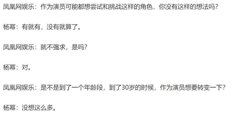 在一则名为《杨幂:从不主动争角色这样姿态不好看》的采访中,记者问她: