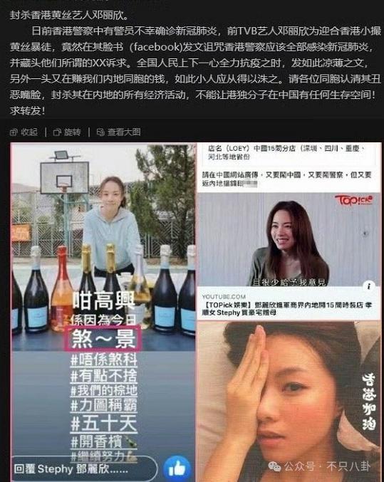 有网友表示,邓丽欣疑似立场有问题,有过很多 gd 行为,甚至还诅咒过港警全部染病 ......