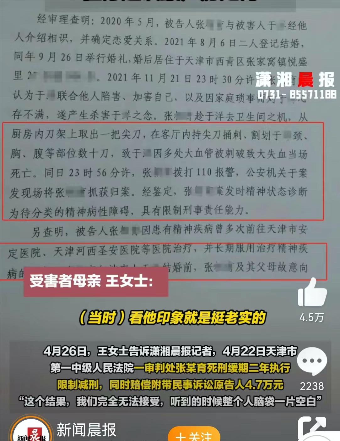 49刀将新婚55天的妻子杀死,只赔偿4.7万还是缓刑,岳父母不满意