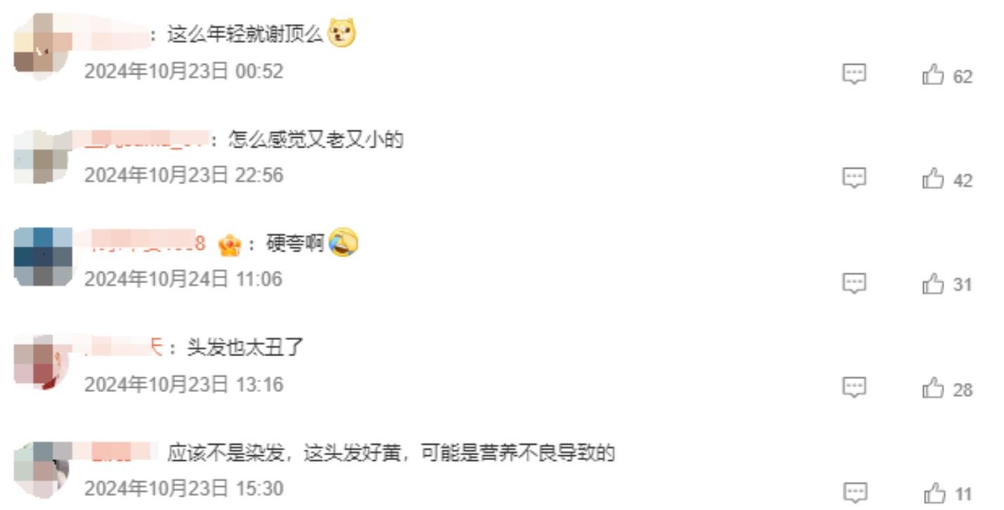 对此,有些嘴毒的网友直接评论:“看上去像秃顶小老头。”