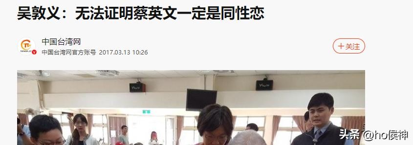 信源:《吴敦义:无法证明蔡英文一定是同性恋》——中国台湾网 2017.03.13