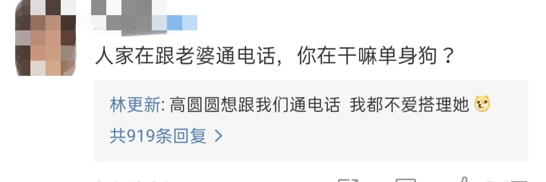 这一幕也让林更新惨遭网友调侃"人家在跟老婆通电话,你在干嘛单身狗?"林更新还回复"高圆圆想跟我们通电话,我都不爱搭理她"。嘴硬的态度也引发了更多网友的"嘲笑"。