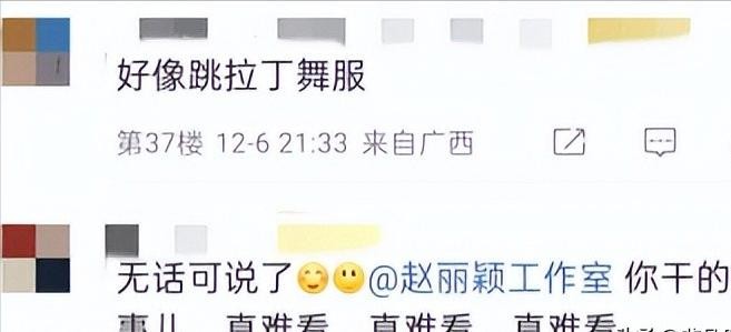 这件事的起因就是赵丽颖的这身西装裙,不少人觉得不好看,有的网友甚至调侃这套衣服像拉丁舞服,或者“做微商”的穿搭。