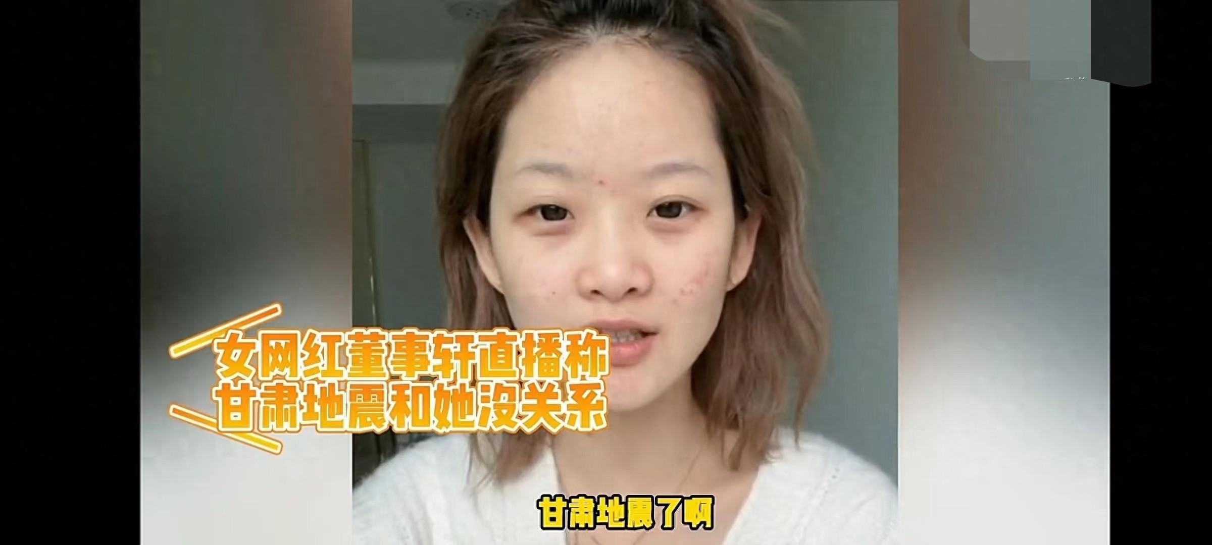 日前,一段女网红董事轩直播视频在网上引发强烈愤慨。在视频中,当有粉丝评论提到“甘肃地震了”,董事轩先是一愣,随后竟然笑着反问道:“跟我有什么关系?”这样明确不顾他人死活的态度,立刻招致网友集体谴责。