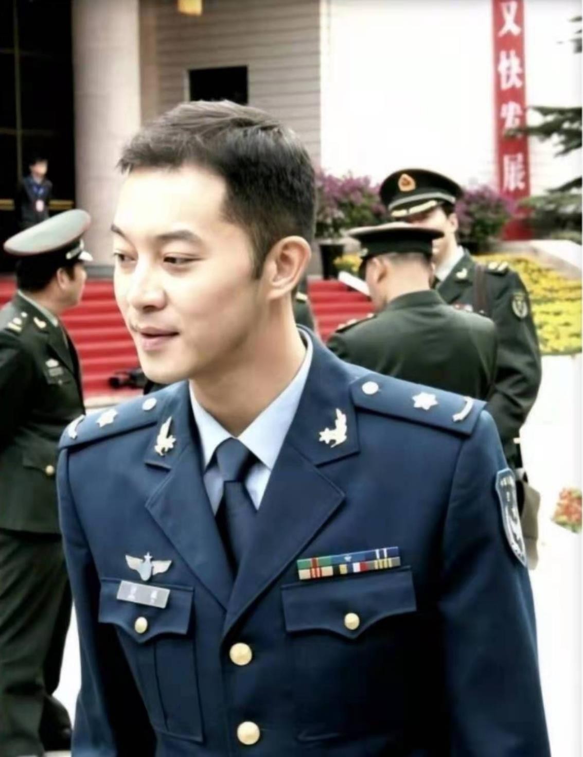 只看脸,还是帅气的校草级别,穿上军装,帅气依旧,少年气依旧。看露出来的肉肉的手臂,时不时发福的脸庞,平时估计很少锻炼。
