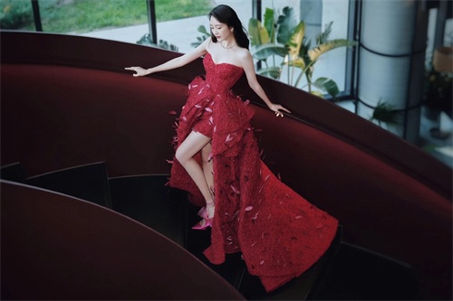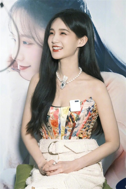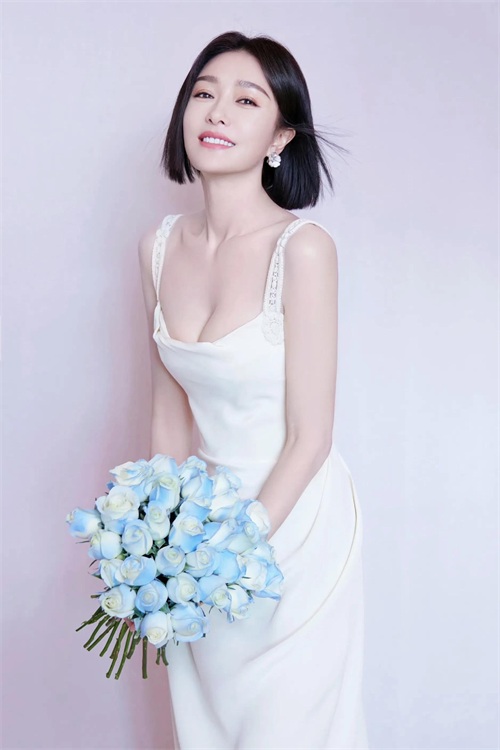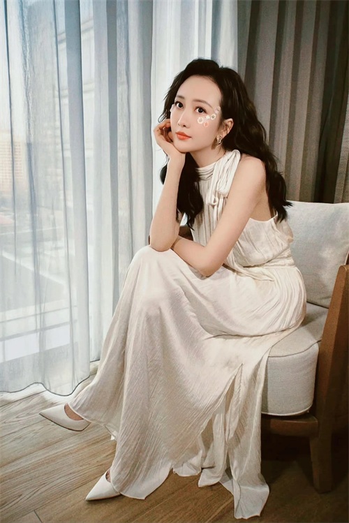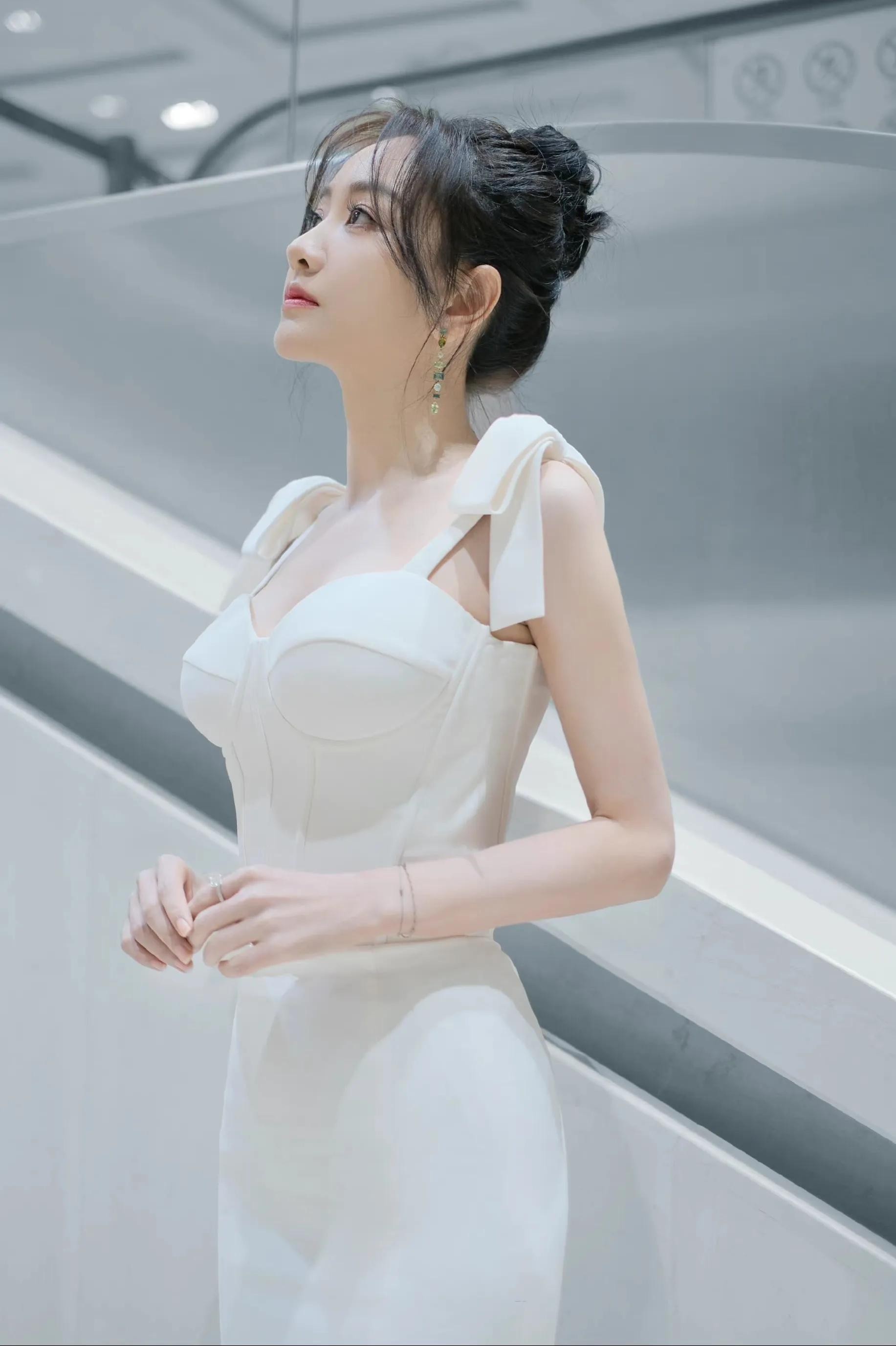 秦岚,白裙礼裙,优雅迷人。