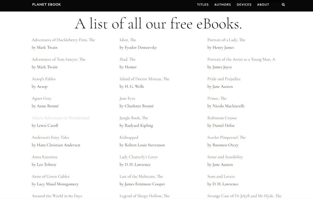一个超级丰富的电子书网站,页面也非常干净,而且所有的书籍都进行了详细分类,提供小说、文学、历史、名著、悬疑、科幻、哲学等电子书。