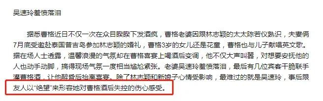 没想到在饭桌上喝完酒的曹格就开始大闹,耍酒疯不说还要动手打人,一场婚礼就被这样搅和得乱七八糟,各大媒体争相报道。