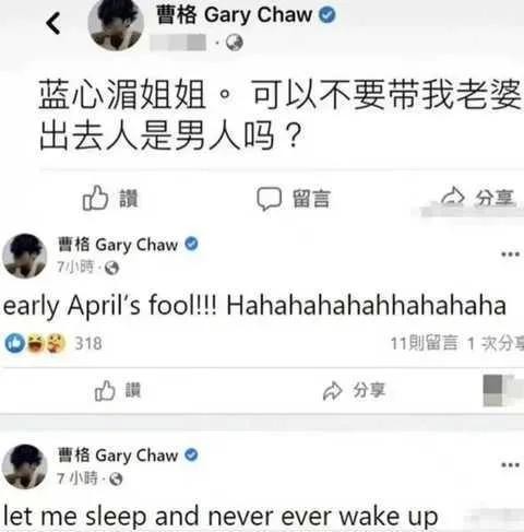 3月30日,曹格在公共平台爆粗口喊话台湾著名女演员蓝心湄,短短的一句话竟然都读不通,网友拼接以后才弄懂大概,意思就是让她不要带她老婆去见其他男人。