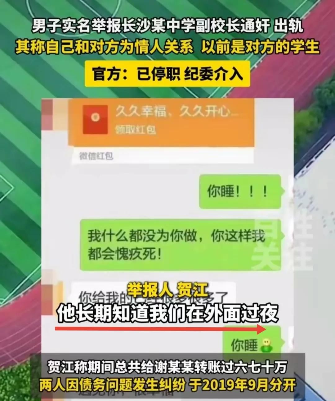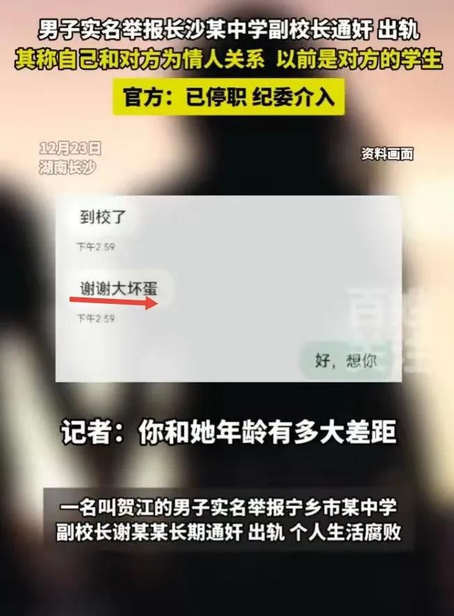 长沙男子贺某以身入局,实名举报宁乡市十三中学女副校长谢某雄长期出轨自己,个人生活混乱腐败。