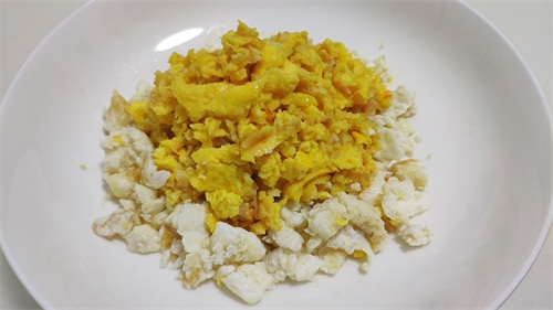 2.炒蛋黄和蛋清的时候,火候一定要掌握好,千万别炒老了。特别是蛋黄,用余温炒熟就可以了