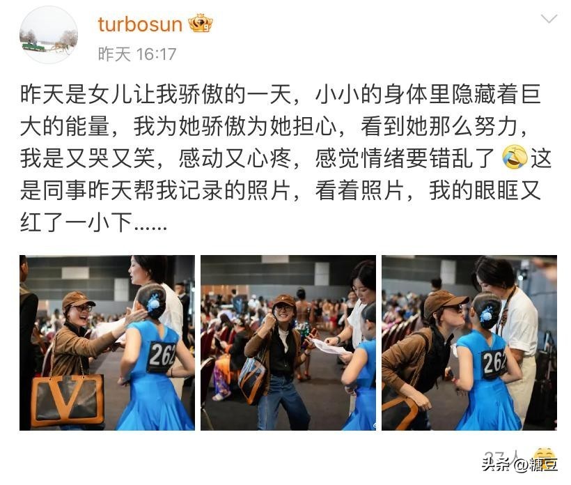 孙俪的小花今年已经十岁了,尽管年纪尚小,但她在拉丁舞方面的表现可不输给专业选手。那个比赛的日子,孙俪就像所有其他的妈妈一样,陪伴在女儿身边。比赛结束后,她迫不及待地在社交平台上分享到: "那是我最骄傲的一天,小小的身体里隐藏着巨大的能量。"配合着的,还有母女俩温馨的照片,小花虽然只是在妈妈的索吻下轻轻递过了脸颊,却展露出一种成熟与稳重。