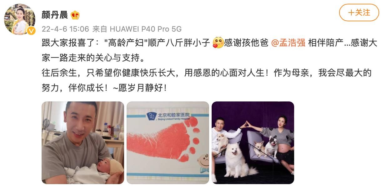 【导语】颜丹晨一天带来两惊喜:44岁顺利产下八斤胖小子,神秘老公首曝光。