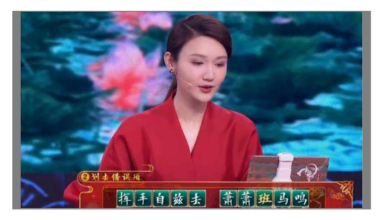 在比赛过程中,一句“挥手自兹去,萧萧班(斑)马鸣”的考题,难倒了不少在场的观众,这个班(斑)到底哪个是正确的。