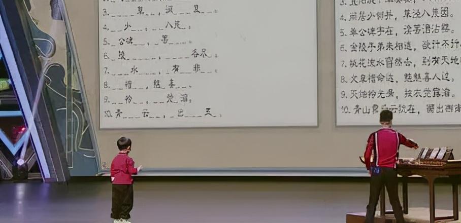 于是主持人打乱诗词的顺序,随机从中抽取五言诗中的两句,并且把这些诗句的顺序打乱,这也没有难住王恒屹,他轻松识别并且背出了整首诗词,获得全场喝彩。