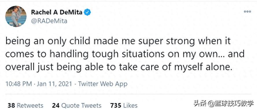 前两天,瑞秋在个人社媒更新动态:“作为一个独生女长大,让我在孤身遇到困境时变得很坚强...不管怎么说,我能一个人照顾好自己。”