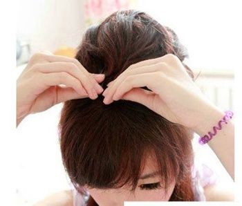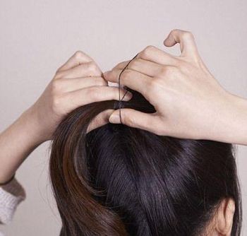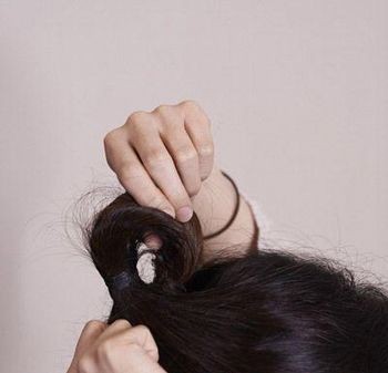 step3:然后用手在马尾中间挖出一个洞来。