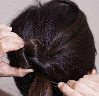 step4:盘发发梢扭转并用小发夹固定,不要松散。