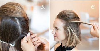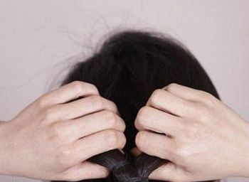 接着将发丝在脑后扭转一下,并将左侧耳际处的头发一股也扭转。