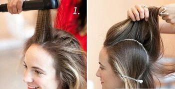 step3:卷过的头发固定在刘海后边,形成高耸的盘发效果。