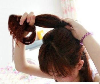 step4:将马尾秀发从洞中塞进去并拉出来。