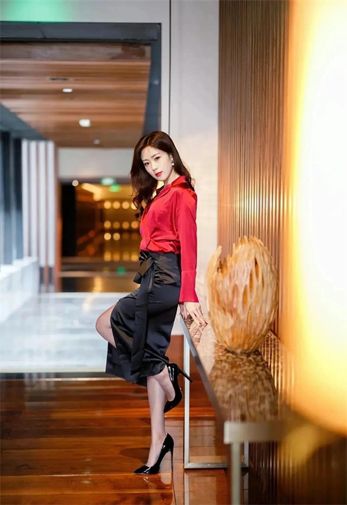 鲜红上衣,如同烈火般炽热,不仅映衬出杨紫嫣白皙的肌肤,更凸显了她那份与生俱来的热情与活力。上衣的设计简约而不失精致,每一处细节都透露着匠人的用心与对美的追求。它紧紧贴合着杨紫嫣的身形,勾勒出她曼妙的曲线,让人不禁为之倾倒。