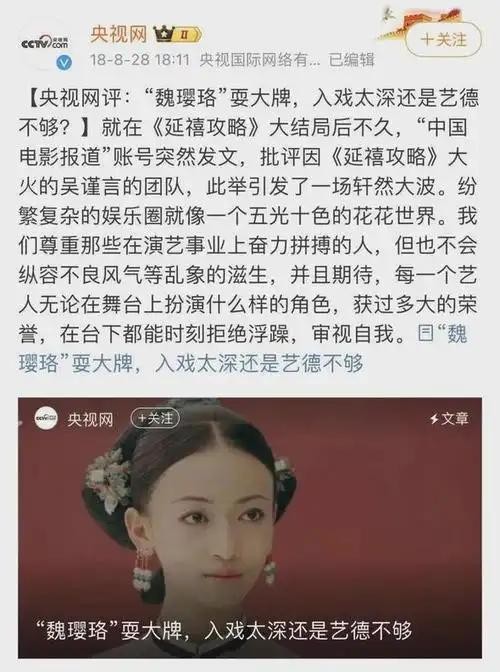 [央视网评:“魏璎珞”耍大牌,入戏太深还是艺德不够?]