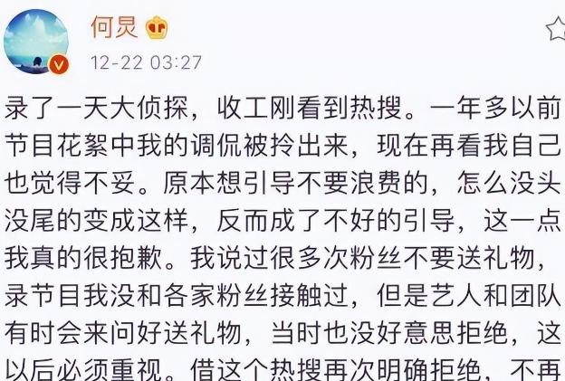 甚至还有了很多不好的导向给社会带来了很大的麻烦,何炅也表示说不要让粉丝送礼物。